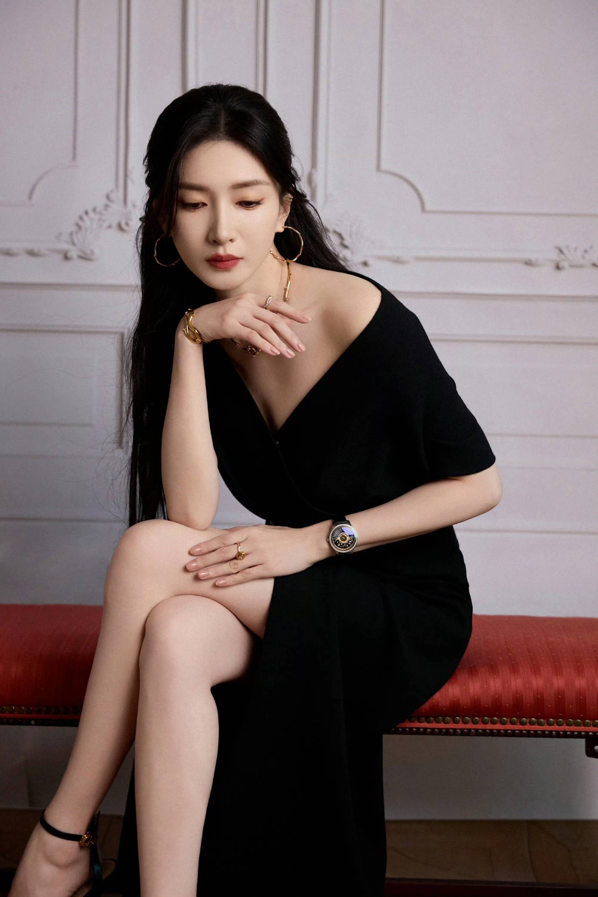 - 2025/12/04江疏影黑色V领长裙气场全开,御姐风范藏